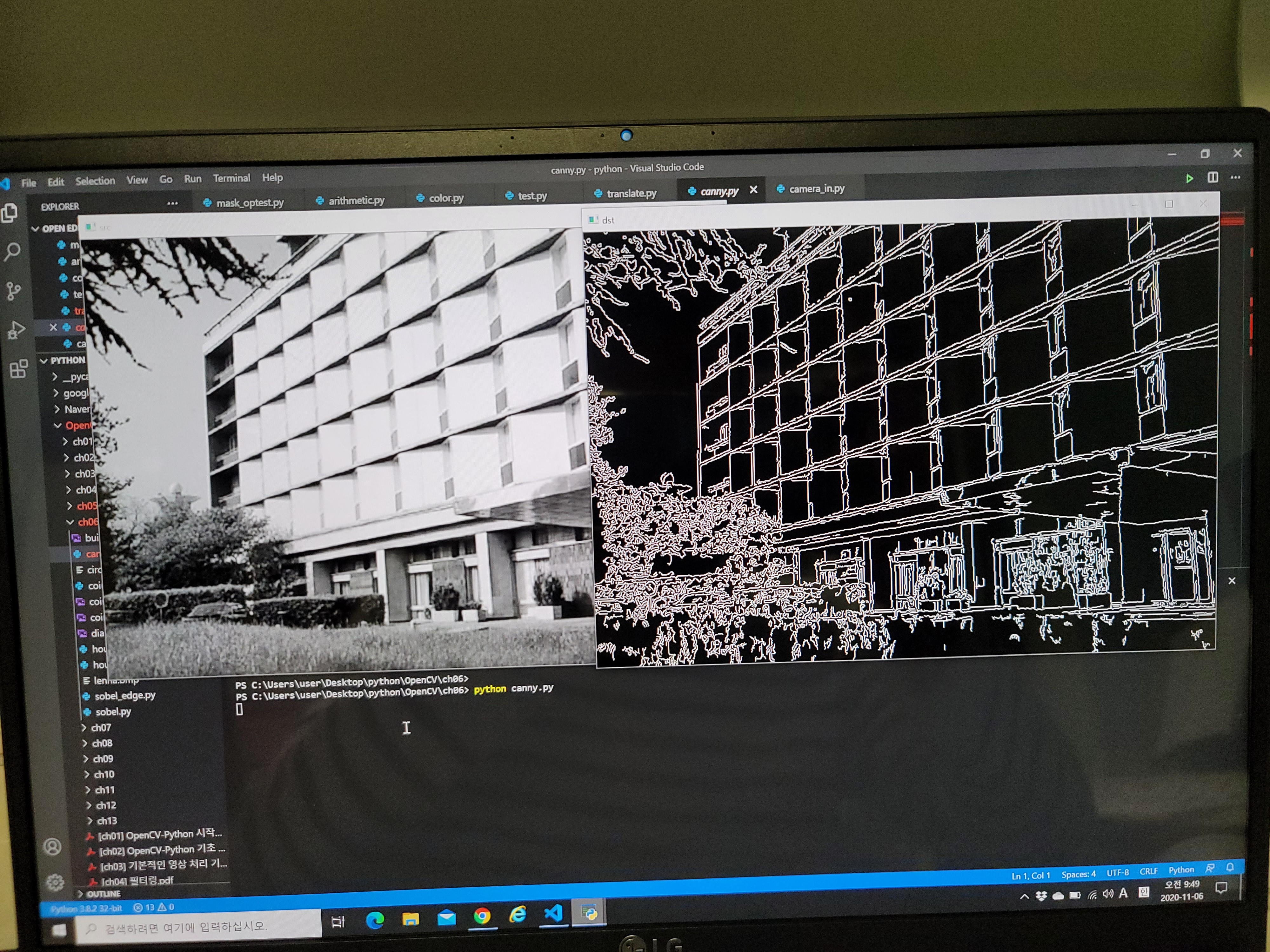 오늘은 전 강의에서도 몇번 본 적이 있는 캐니 에지 검출에 대해 배워봤습니다.